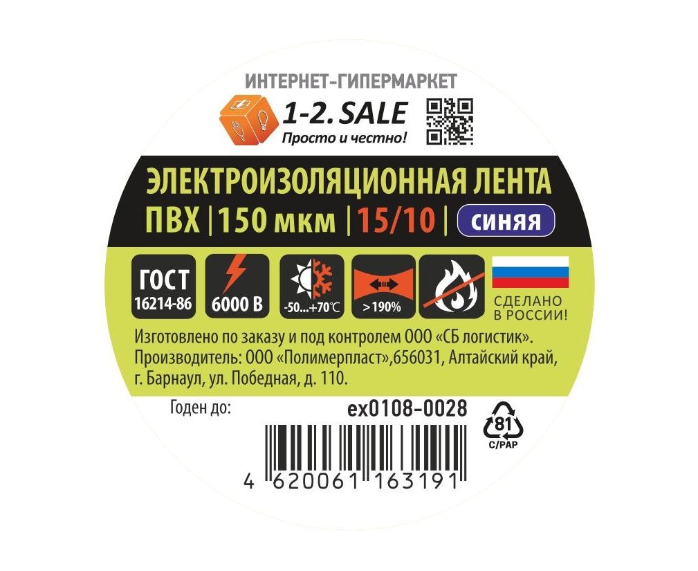 —Изолента 150 микрон 0.15х15мм 10м синяя