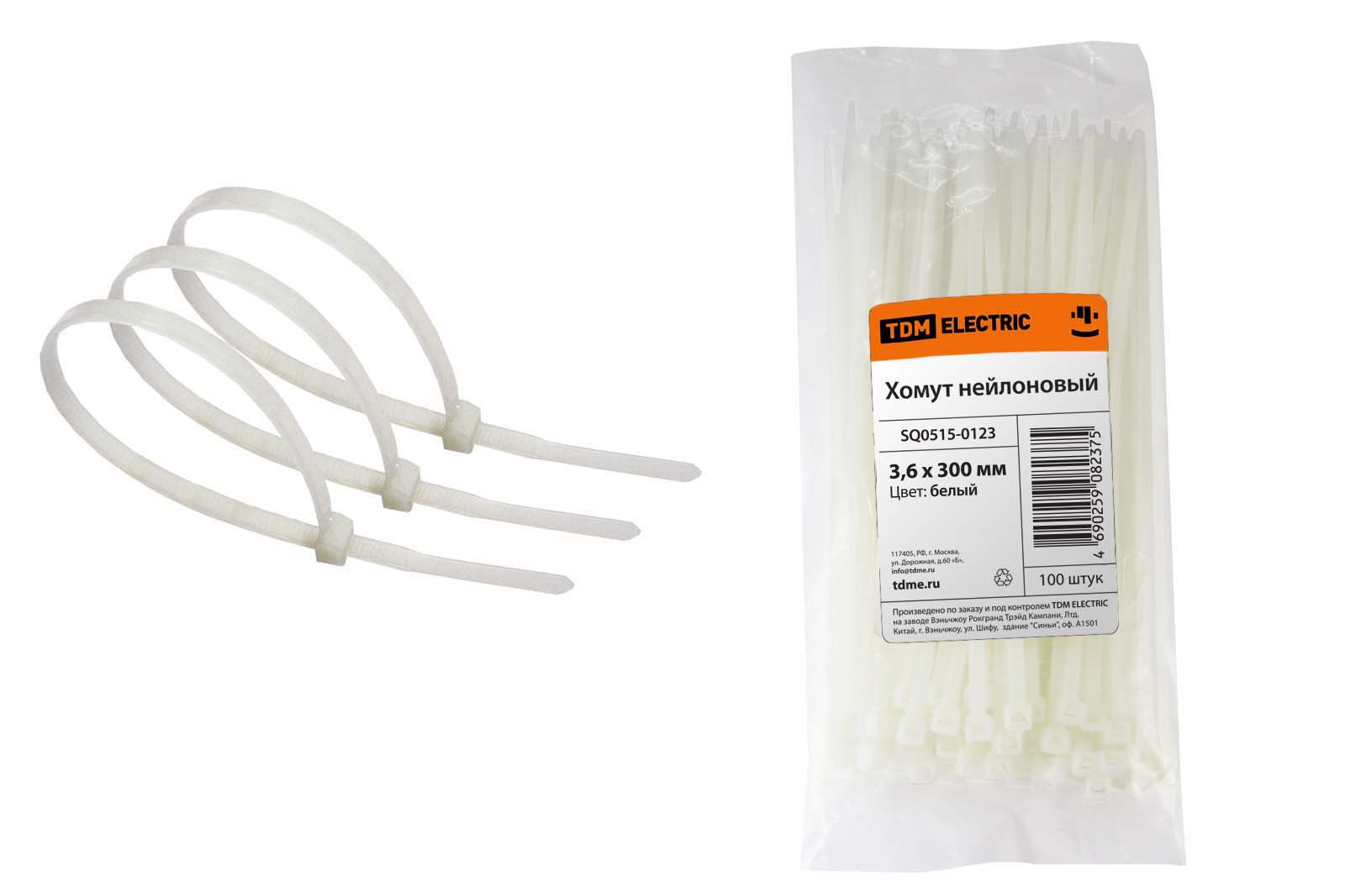 Хомут нейлон 3.6х300мм белый 100шт