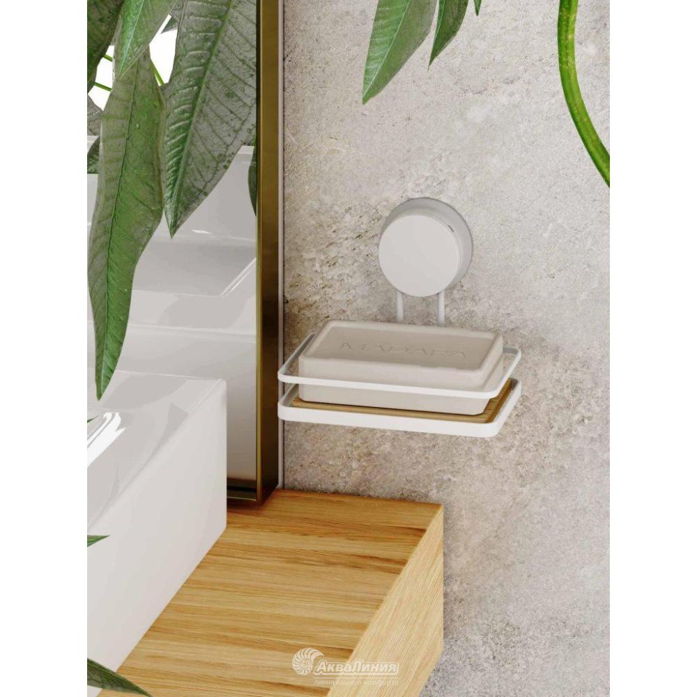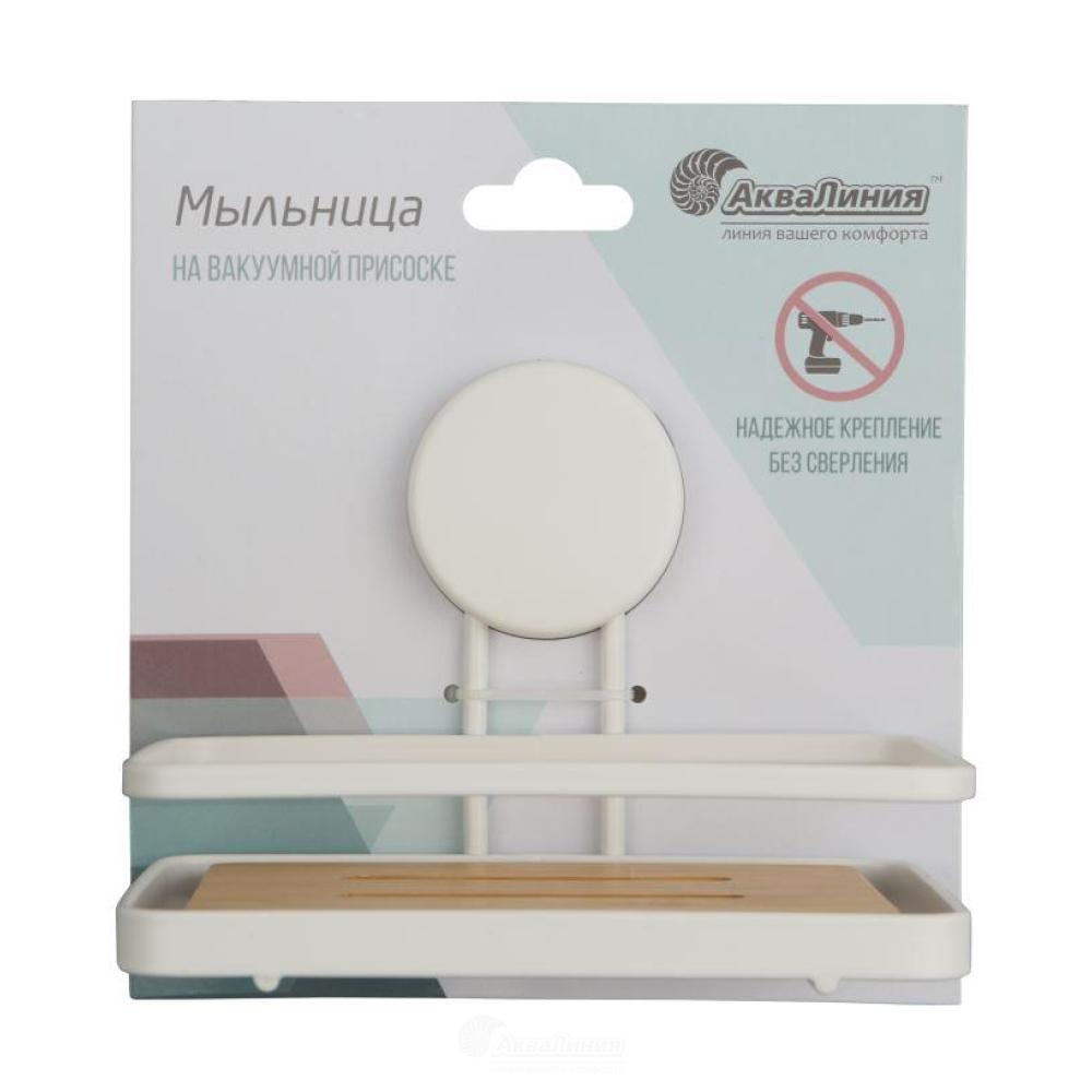 —Мыльница Белый металл / бамбук на присоске W7741-25BP