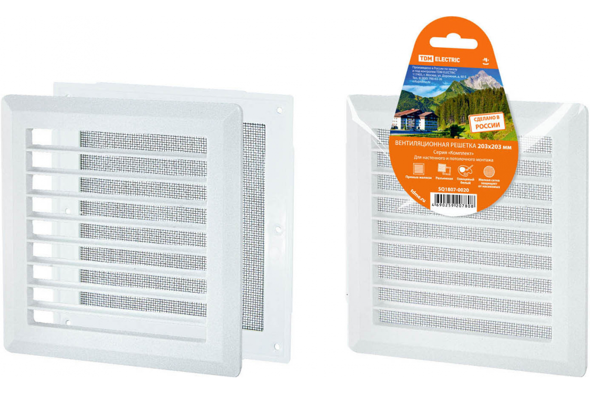 —Решетка вентиляционная разъемная с сеткой с прям. жалюзи 203х203мм