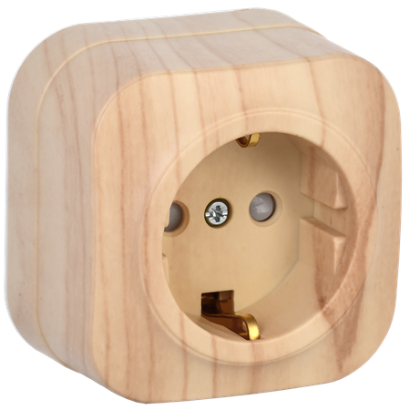 Розетка 1-постовая накладная с заземлением с закр. шторкой GLORY сосна