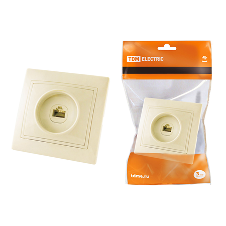 Розетка 1-постовая встраиваемая телефонная Таймыр слоновая кость