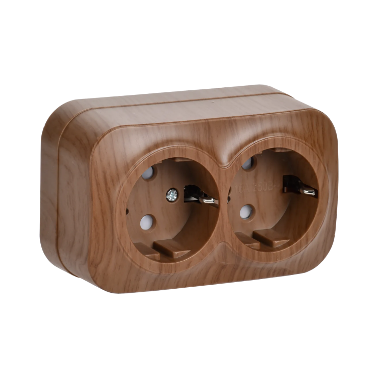 —Розетка 2-постовая накладная с заземлением GLORY дуб