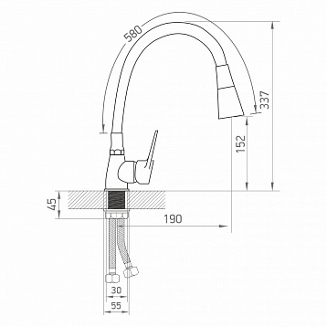 —Смеситель для кухни Федерико Серый 588-155-19 с гнущимся изливом