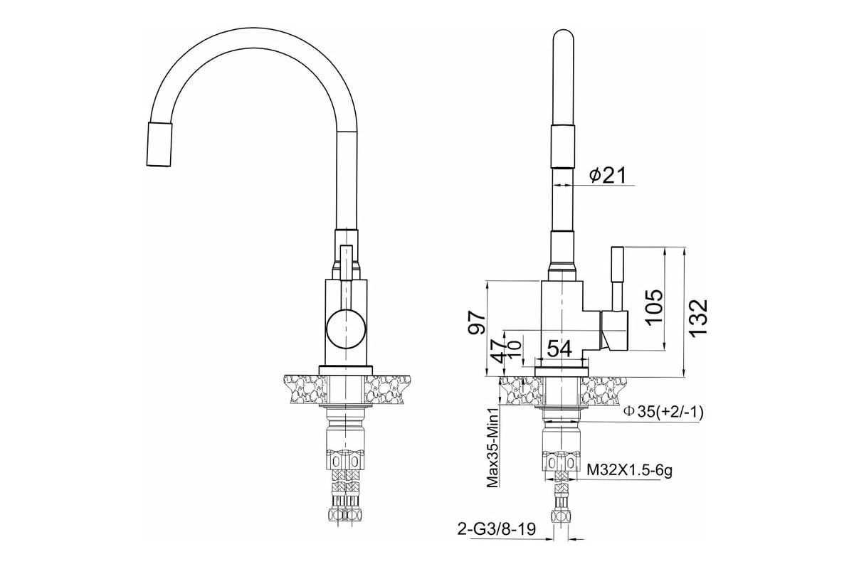 —Смеситель для кухни Ломонд Черный 11320 с гибким изливом