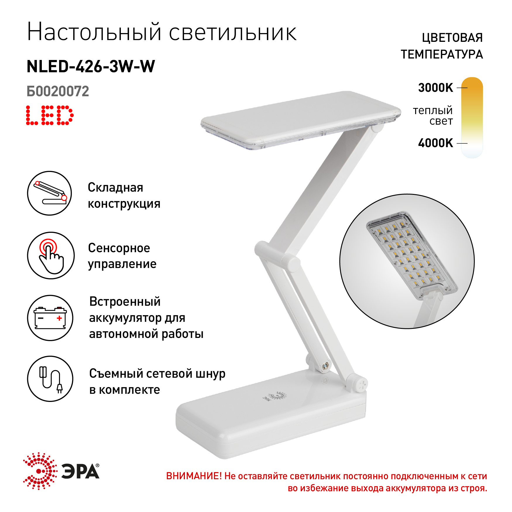—Светильник настольный LED NLED-426-3W-W 3W