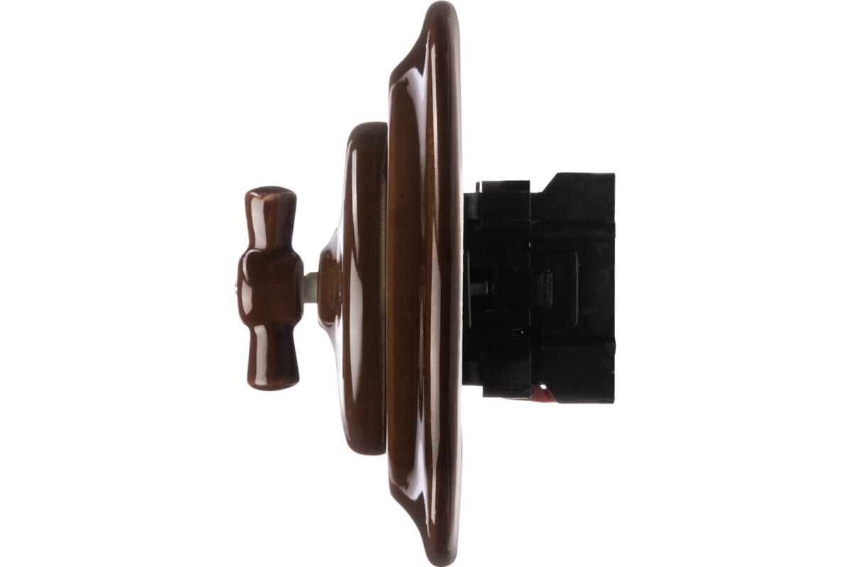 Выключатель встраиваемый с 2 клавишами с поворотной ручкой Болонь коричневый
