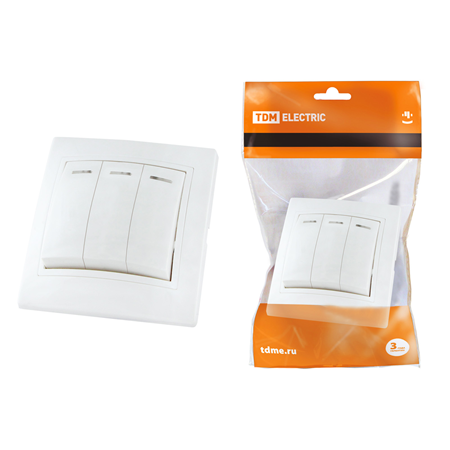 —Выключатель встраиваемый с 3 клавишами Таймыр с подсветкой белый