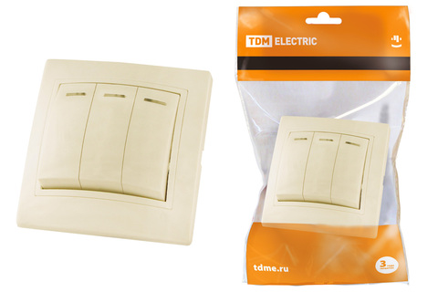 Выключатель встраиваемый с 3 клавишами Таймыр с подсветкой слоновая кость