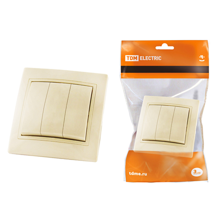 —Выключатель встраиваемый с 3 клавишами Таймыр слоновая кость
